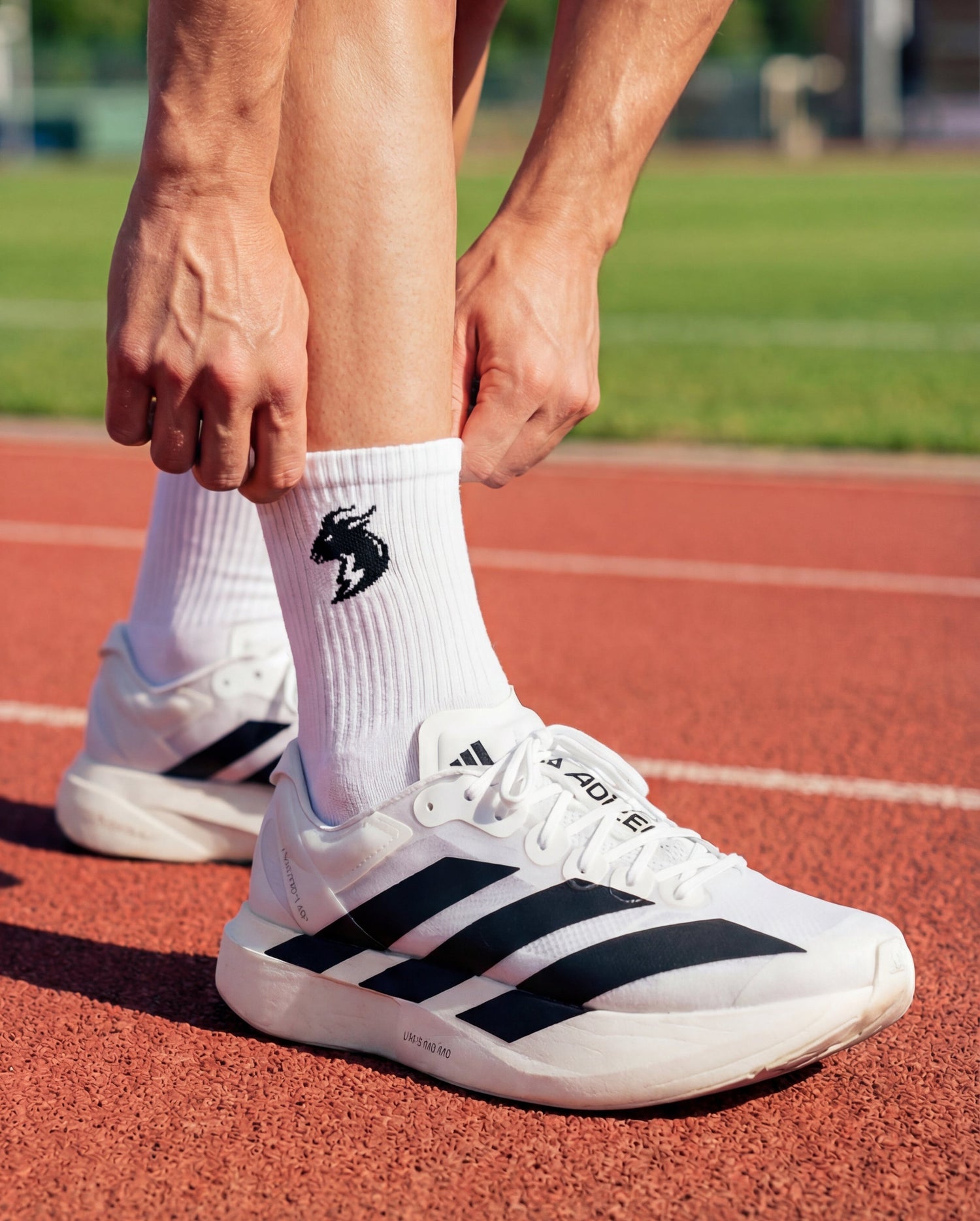 Completing the launch are our performance Crew Socks, crafted from a technical blend of cotton, nylon, and spandex to ensure breathability, stretch, and comfort in every step. The look is finished with the iconic Goat head logo - a symbol of strength, focus, and greatness.